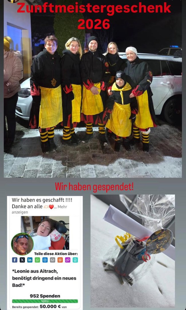 Statt einem Zunftmeistergeschenk haben wie dieses Jahr an das Kinderhospiz Bad Grönenbach gespendet.